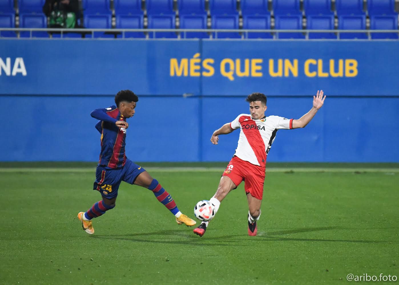 El partido inicio de manera favorable para el Barca, controlaban la posesión del balón y ejercían una presión adelantada que obligaba al Hospitalet a retroceder, con el pasar de los minutos los visitantes fueron entrando en el juego, logrando crear una que otra opción de peligro, los blaugranas apuraron sus líneas y en un doble centro, Manaj cabeceaba al fondo de la red. Tras el gol, el conjunto cule intensifico el ritmo en búsqueda del segundo, hasta que en el minuto 37’ Ilaix Moriba remato desde la frontal ampliando la diferencia. El equipo de la ribera no se podía levantar, no encontraba el camino y pagaba caro sus despistes, finalizando la primera parte, en una contra rápida Ilaix cae al suelo, el colegiado sin dudarlo decreta penal, Manaj con una ejecución potente lo transforma en el tercer tanto de la tarde. De esta forma se iban al descanso.