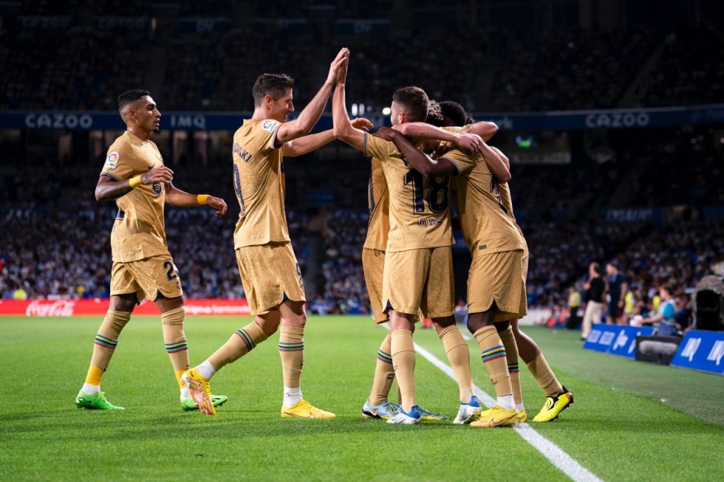 Bastó apenas un minuto para que Robert Lewandowsky abriese el marcador y colocara a los visitantes en posición superior, el polaco disparó al ángulo inferior izquierdo tras un pase profundo de Alejandro Balde, dejando al portero de la Real Sociedad sin posibilidad de defender el disparo. Pero el equipo local no se vio sacudido por la mala entrada en el partido y cinco minutos después demostró estar presente, Alexander Isak el delantero sueco recibe el balón dentro del área grande, dispara sobre la cabeza de Ter Stegen e iguala el marcador.