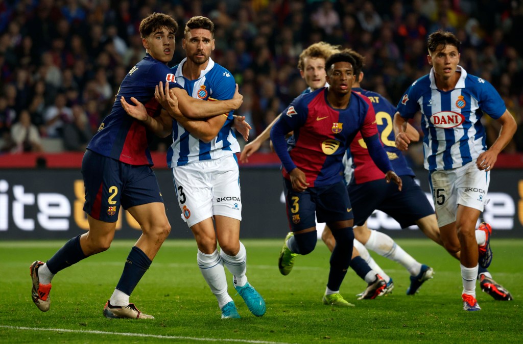 Como de costumbre, la asociación partía por las grandes figuras y nombres personales, el talento poco a poco daba sus primeras alertas; Dani Olmo con un testarazo avisaba, e instantes más tarde, la insistencia abriria el marcador, el de Terrassa con un remate milimétrico hacía explotar Montjuic. El gol motivaría sorprendentemente a los Blaugranas que con total concentración dominaban a placer. Raphinha de “vaselina” convertiría el segundo en el 23′ y nuevamente Dani Olmo con una joya de media distancia ampliaría a tres la diferencia. Los tantos tempraneros caerían muy mal en los Blanquiazules, perplejos y desdibujados no lograban conectar, fallos repetitivos pasaban factura.