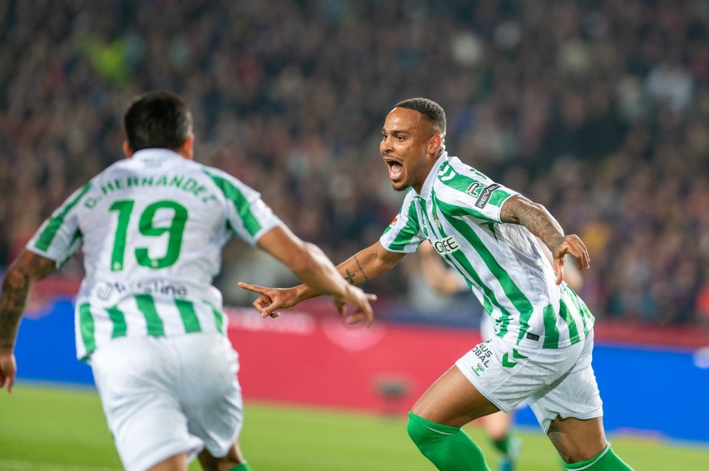 Tras el Barça gozar de muy buenos minutos, Antony provocó corner a favor de los verdiblancos. El Betis cobró el tiro de esquina y Natan anotó el empate con un cabezazo preciso que le paso entre los guantes a Szczęsny.