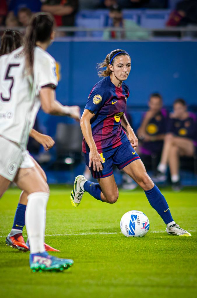 El partido empezó como todo aquel presente en el Johan Cruyff esperaba. Un Barça metido en campo contrario que embotellaba casi en su área a un conjunto visitante que no conseguía dar respuesta al incesante ataque culé. Tras múltiples acciones de peligro para las de Romeu, con numerosos saques de esquina y disparos a portería rival, no fue hasta el minuto 21 de partido cuando Aitana Bonmatí consiguió abrir la lata para las locales con un gol digno de estudio. La acción del primer tanto del choque vino tras una internada por la banda derecha de Vicky López que acabó en centro al interior del área donde la ’14’ no perdonó y con un gesto de calidad propio de la balón de oro hizo el primero para las culés.