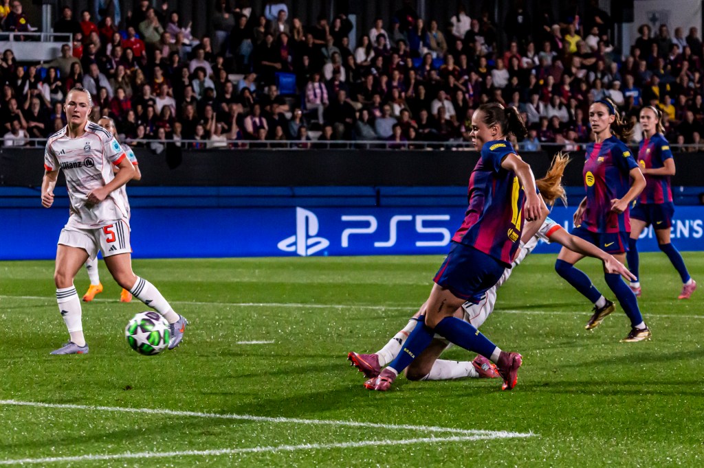 En el 12’, tras un saque de esquina, Irene Paredes estrelló el balón en el larguero y Ewa Pajor, la más rápida de todas, remató en acrobacia para hacer el 2-0. El Bayern intentó reaccionar con algunas llegadas de Bühl y Caruso, pero la presión catalana fue asfixiante. En el 27’, Esmee Brugts firmó el 3-0, culminando con frialdad una magnífica combinación con Alexia dentro del área.