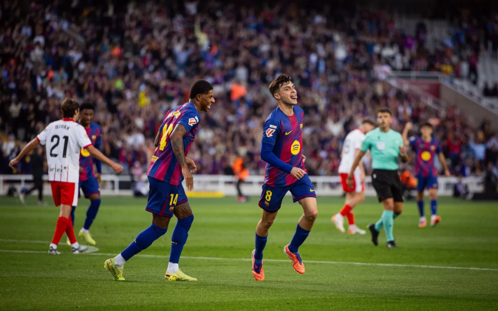 El derbi catalán arrancó con el FC Barcelona imponiendo su sello desde el inicio. Con Toni Fernández partiendo como falso ‘9’ y Lamine Yamal eléctrico por banda derecha, los azulgranas dominaron los primeros compases ante un Girona replegado, que apenas salía de su campo. Rashford avisó con una falta directa y Lamine levantó a la grada con un autopase de fantasía.