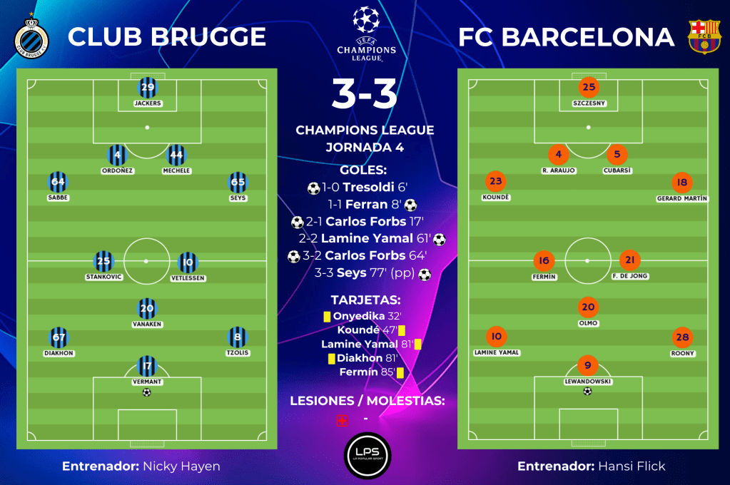 Club Brugge y FC Barcelona se enfrentaban en esta 4ª jornada de la Fase Liga de la Champions con un objetivo común, que era ganar y conseguir sumar los 3 puntos, pero con situaciones bien distintas en este inicio de la competición.