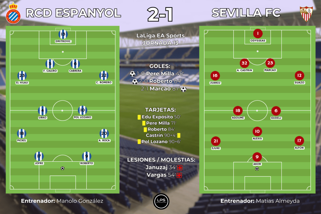 RCD Espanyol y Sevilla se enfrentaban en esta 13ª jornada de LaLiga EA Sports con un objetivo común, sumar los 3 puntos y mantenerse en la zona noble de la clasificación.