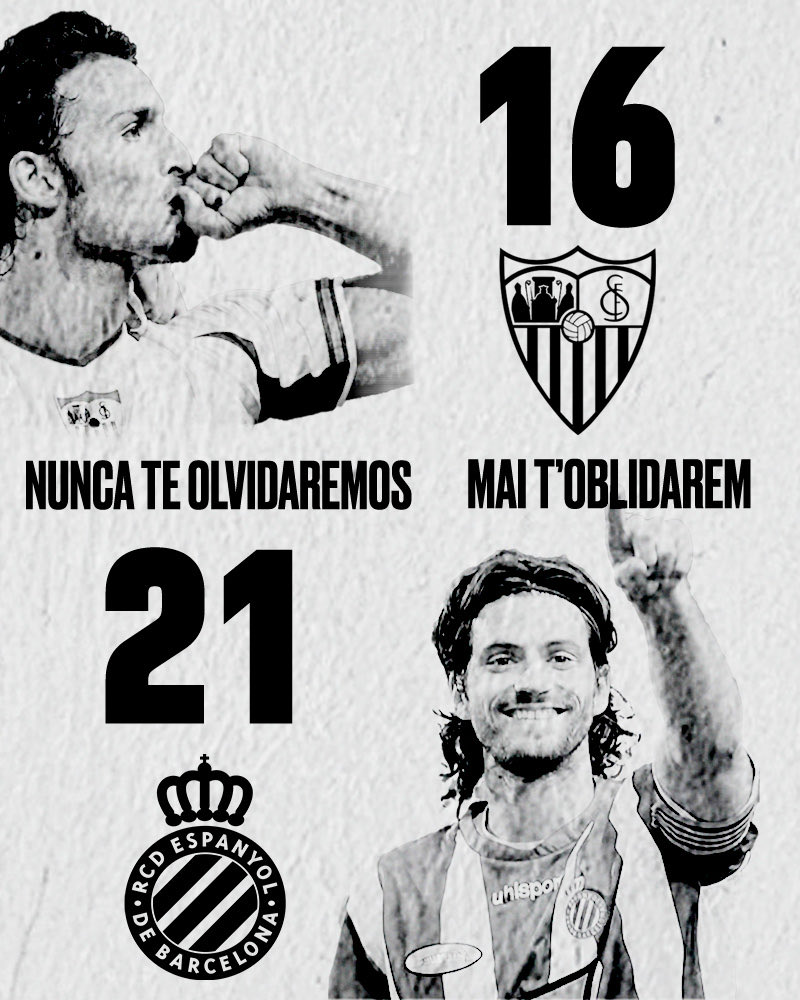 En el minuto 17, el Sevilla tuvo una excelente ocasión para adelantarse en el partido. Una gran acción individual de Peque, que ejecutó un buen disparo raso y colocado hacia la portería defendida por Dmitrovic, terminó con el cuero estrellándose en la base del poste izquierdo. Mientras esto ocurría, en los videomarcadores del RCDE Stadium se proyectó una imagen en recuerdo de Antonio Puerta y Dani Jarque, como viene siendo tradición en cada Espanyol-Sevilla.
