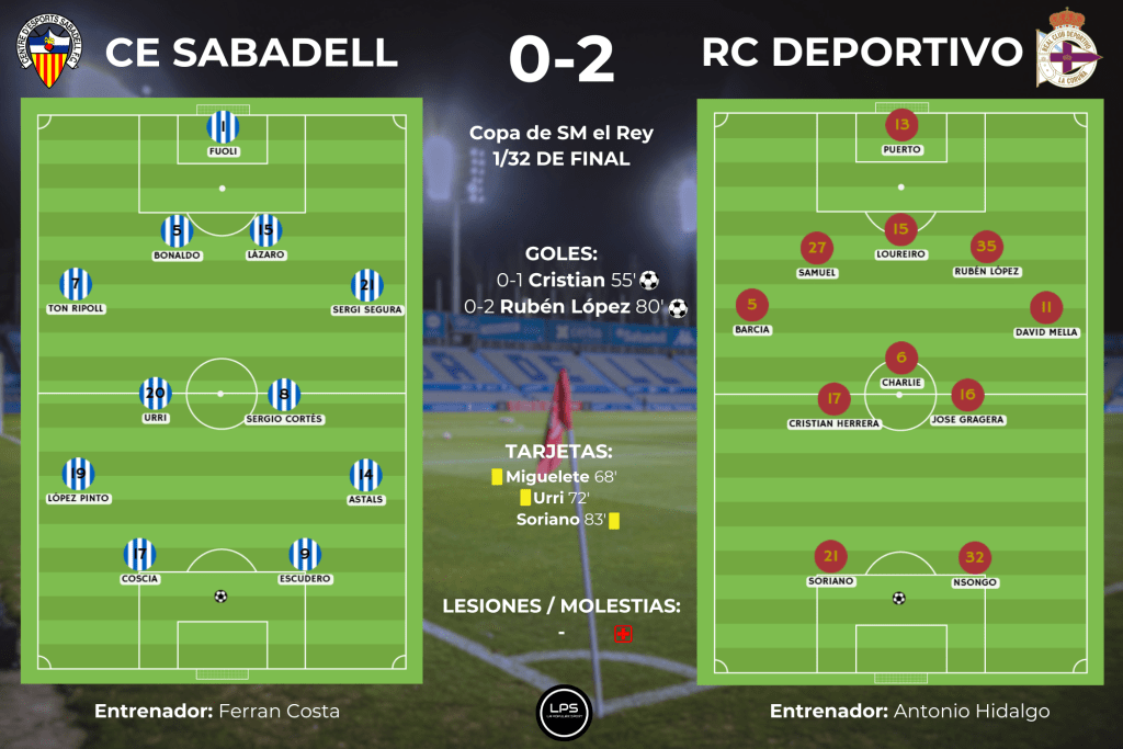 CE Sabadell y RC Deportivo de La Coruña se enfrentaban en esta Segunda Eliminatoria de la Copa de S.M. El Rey con el objetivo compartido de alzarse con la victoria y pasar a la Tercera Ronda de la competición.