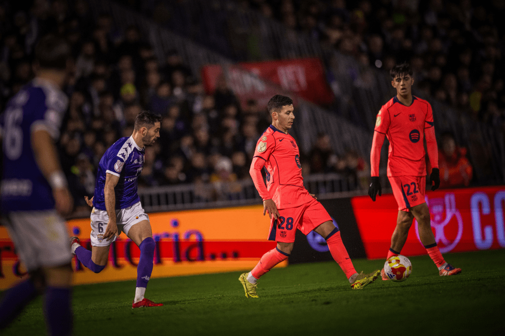 Los blaugranas salieron decididos tras el descanso y generó la ocasión más clara del partido nada más reanudarse. Rashford, habilitado por Roony, se plantó solo ante Dani Vicente, pero el meta local volvió a ganar el duelo con el pie. Fue el aviso de un segundo acto en el que el conjunto azulgrana aumentó el ritmo y empezó a encontrar grietas en la defensa morada. Flick introdujo a Cubarsí en su partido número 100 y reajustó el sistema, con Casadó al pivote y Eric Garcia al lateral derecho.