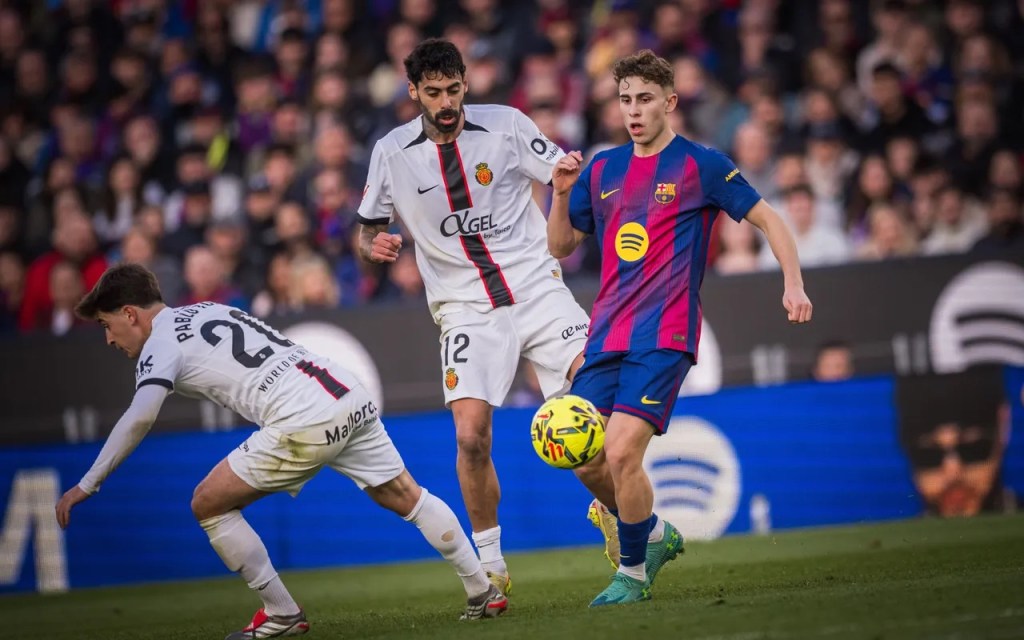 El inicio es claramente azulgrana. En los primeros compases, el Barça monopoliza el balón y se instala en campo rival, aunque sin generar ocasiones claras. El Mallorca, bien ordenado, encuentra espacios por las bandas, especialmente por el costado izquierdo.