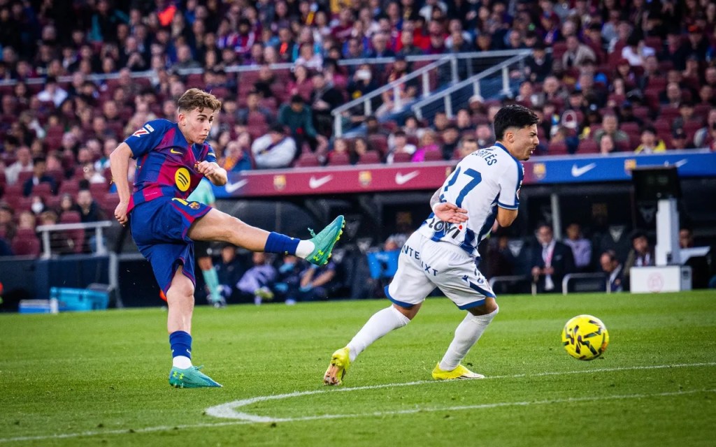 Con toda la expectativa saltaron al campo los locales, demostrando su estratosférica ofensiva y mortal triangulación, el canterano Marc Bernal rompió la paridad en tan solo cuatro minutos, una perfecta combinación quebró el parcial 1-0, el Spotify Camp Nou estallaba de celebración y alegría, nuevamente la mejor versión del joven estaba llegando.