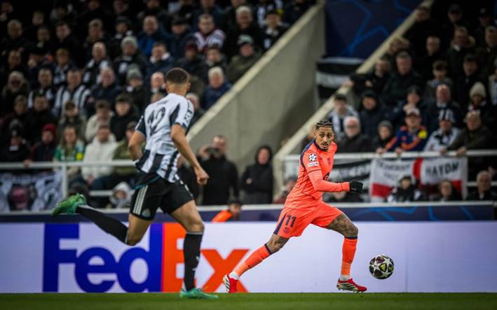 Aturdidos por la intensidad de los primeros minutos de juego, el Barça empezaba a tener la pelota y sus extremos buscaban generar peligro por ambas bandas. El primero en intentarlo era Lamine Yamal, que por zona derecha buscaba filtrarse pero era taponado por uno de los centrales del Newcastle. D. Burn le ponía el cuerpo y le demostraba que no seria fácil meterse adentro del área local. Después de superar el inicio acelerado por las urracas, el equipo catalán generaría la primera opción de cara a puerta, por la banda de Raphinha, un pase rasante casi termina en auto gol por parte de D. Burn que estuvo a centímetros de darle la ventaja a los culés.